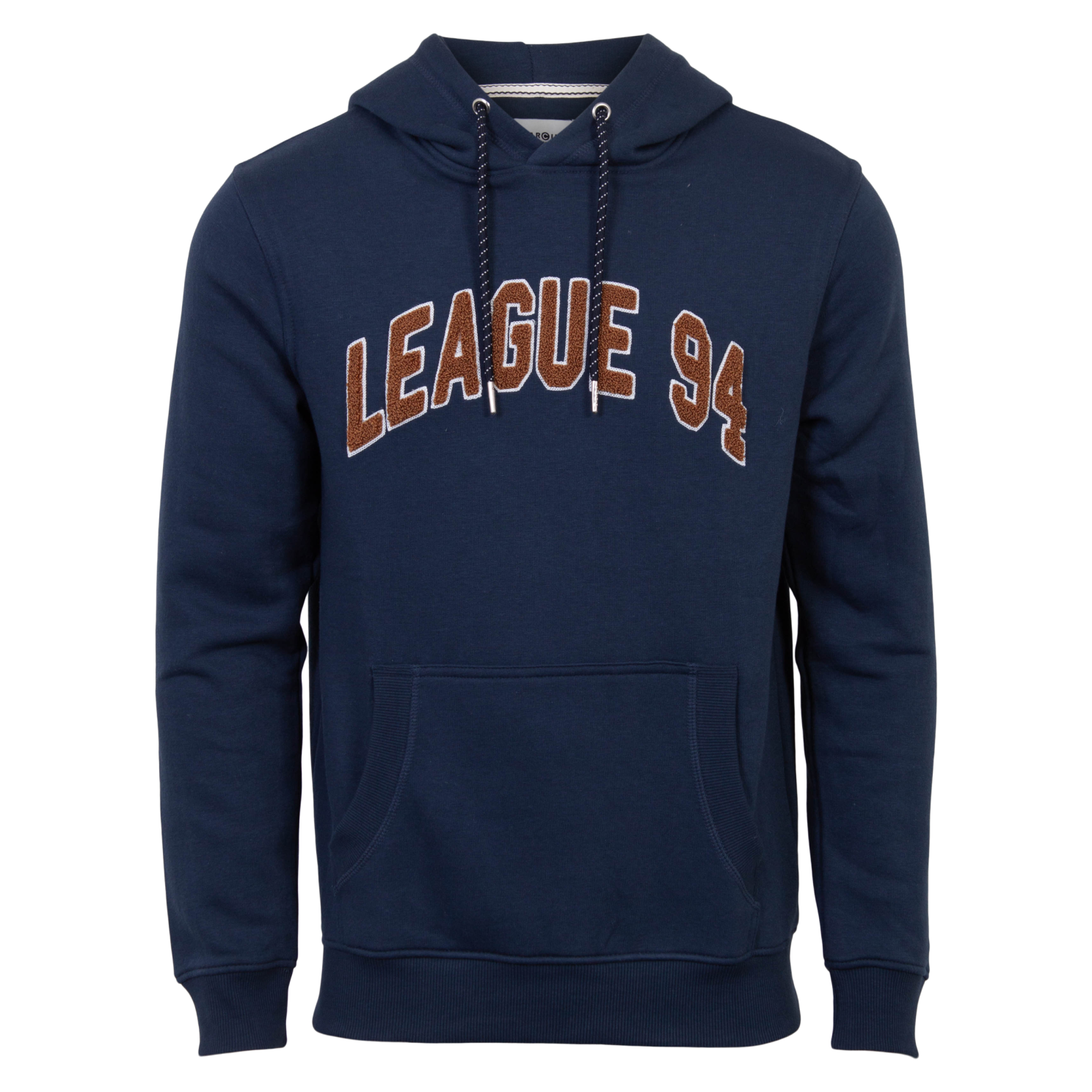 Marcus Clint hættetrøje med kængurulomme og bred ribkant i ærmer og bunden af trøjen..
