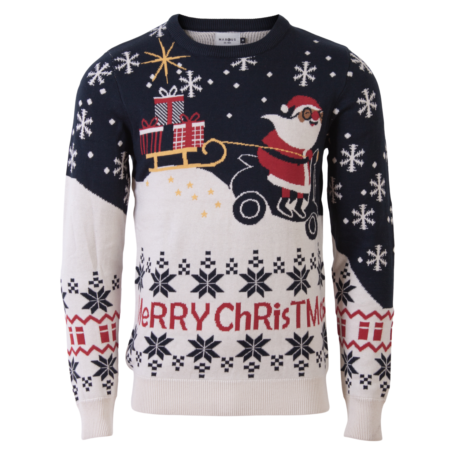 Marcus herre julestriktrøje med lange ærmer, rund halsudskæring og ribkant ved ærmer og bund..
