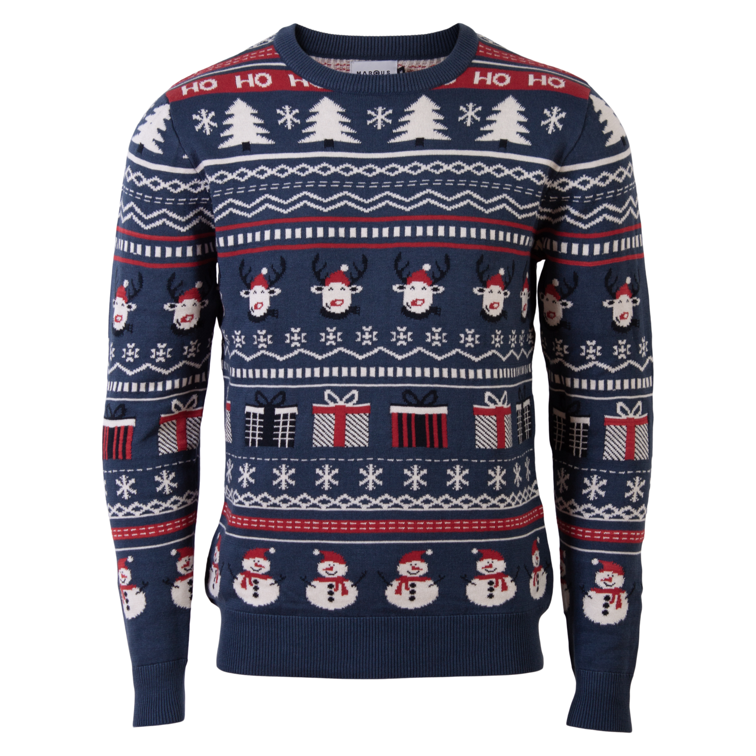Marcus herre julestriktrøje med lange ærmer, rund halsudskæring og ribkant ved ærmer og bund..