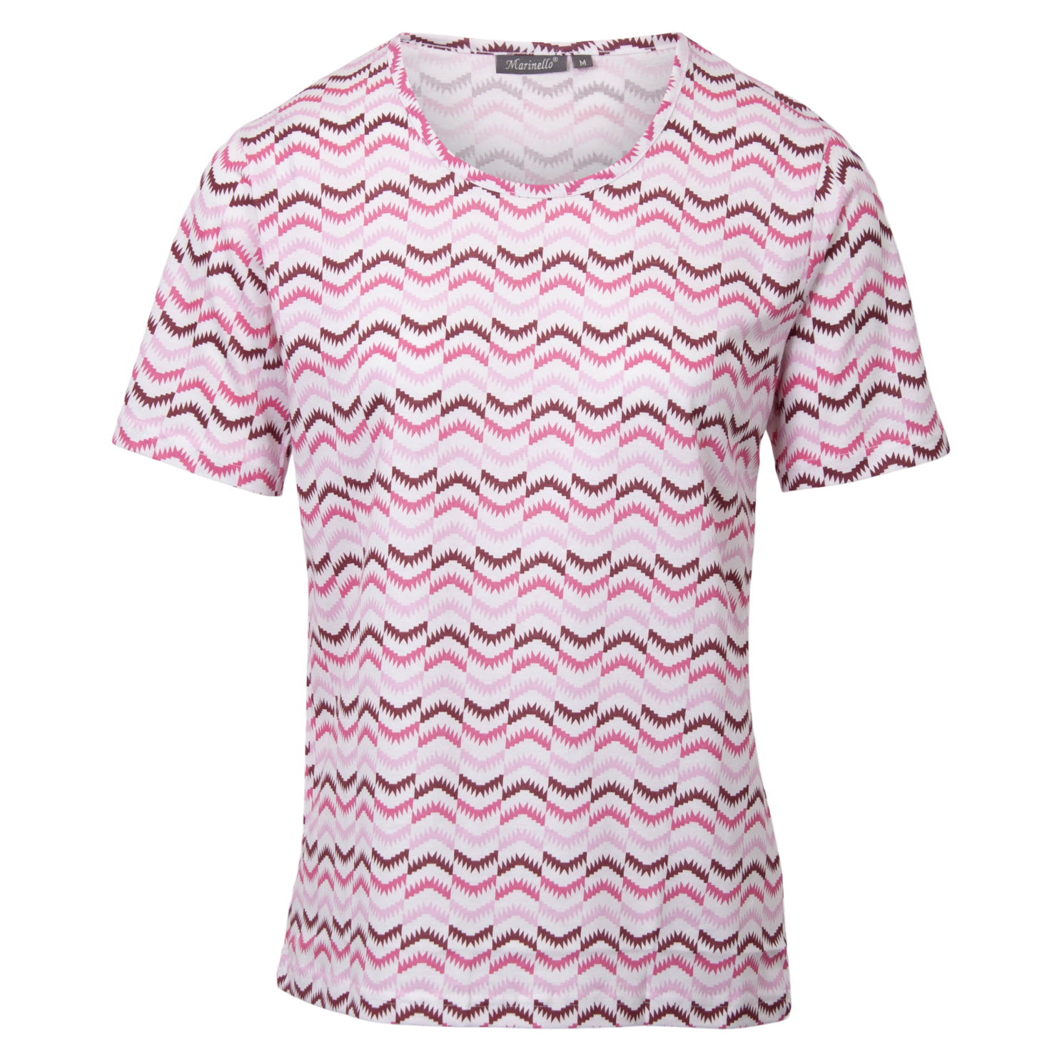 Marinello dame t-shirt. Super smart t-shirt med all-over print. Modellen har rund halsudskæring. Modellen er lavet i materiale, som gør den behagelig at have på..
