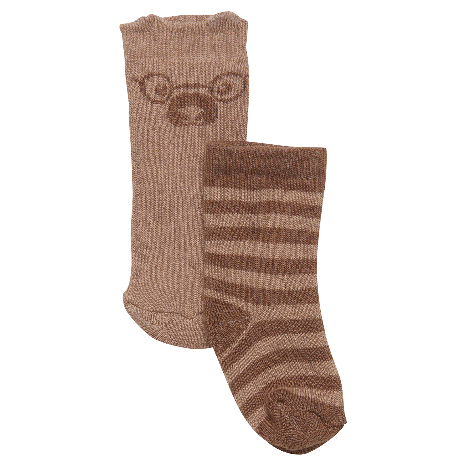 2-pak bestående af et par strømper med striber og et andet par med print af et sødt dyre ansigt. Strømperne er OEKO-TEX certificeret..