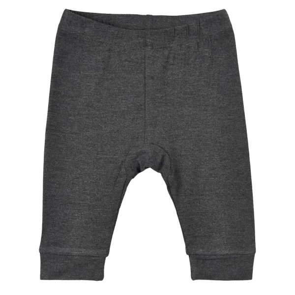 Minymo leggings i ensfarvet grå. Bukserne er lavet af ekstra blødt stof, som gør dem behagelige at bære. Bukserne har ribkant ved anklerne og elastik i taljen..