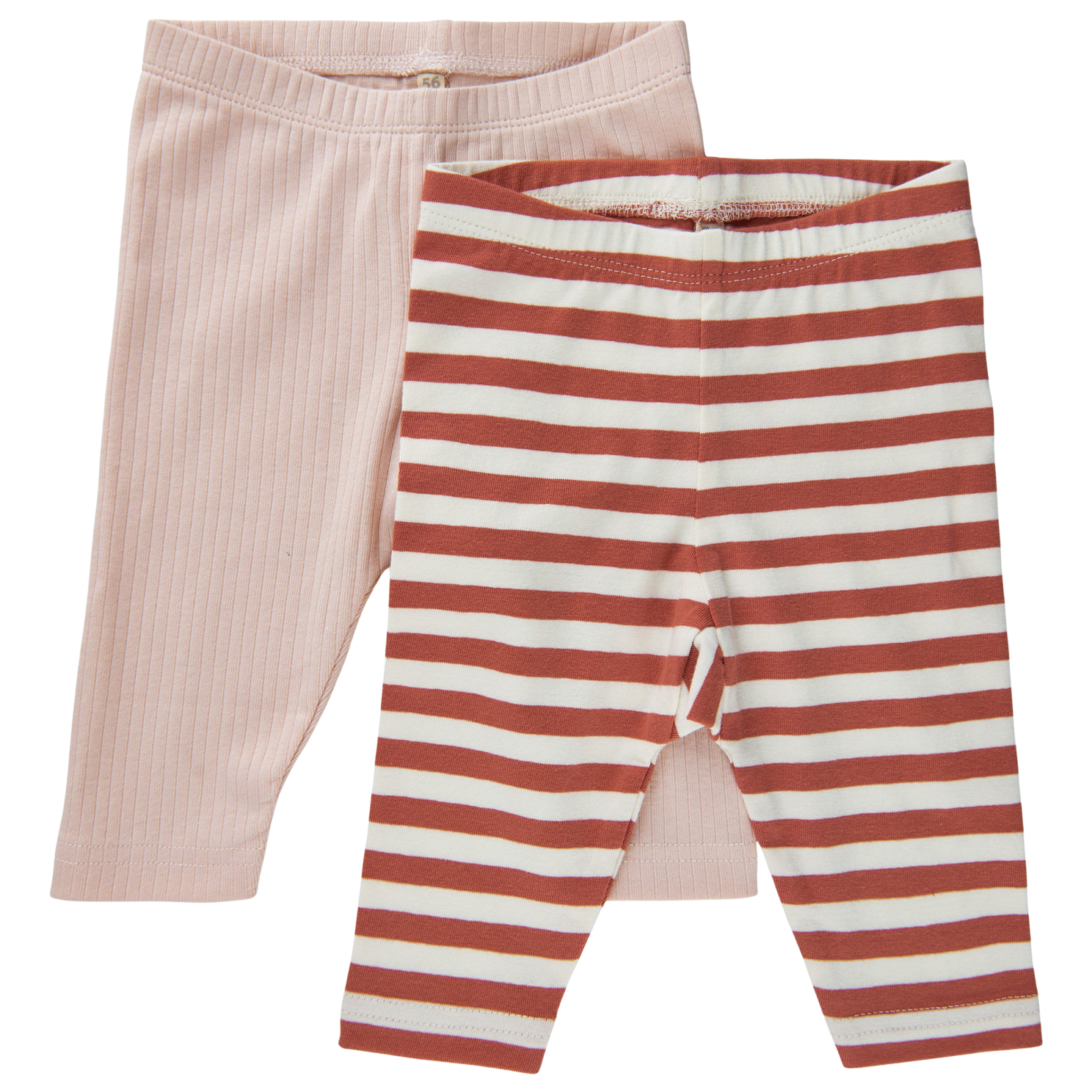 Minymo 2-pak ribstrikket leggings i økologisk bomuld og med elastik i taljen, som er sikkerhed for en god pasform. Babybukserne er lavet i et virkelig lækkert blødt strecht-materiale, som føles behageligt for dit barn og giver maksimal bevægelsesfrihed..