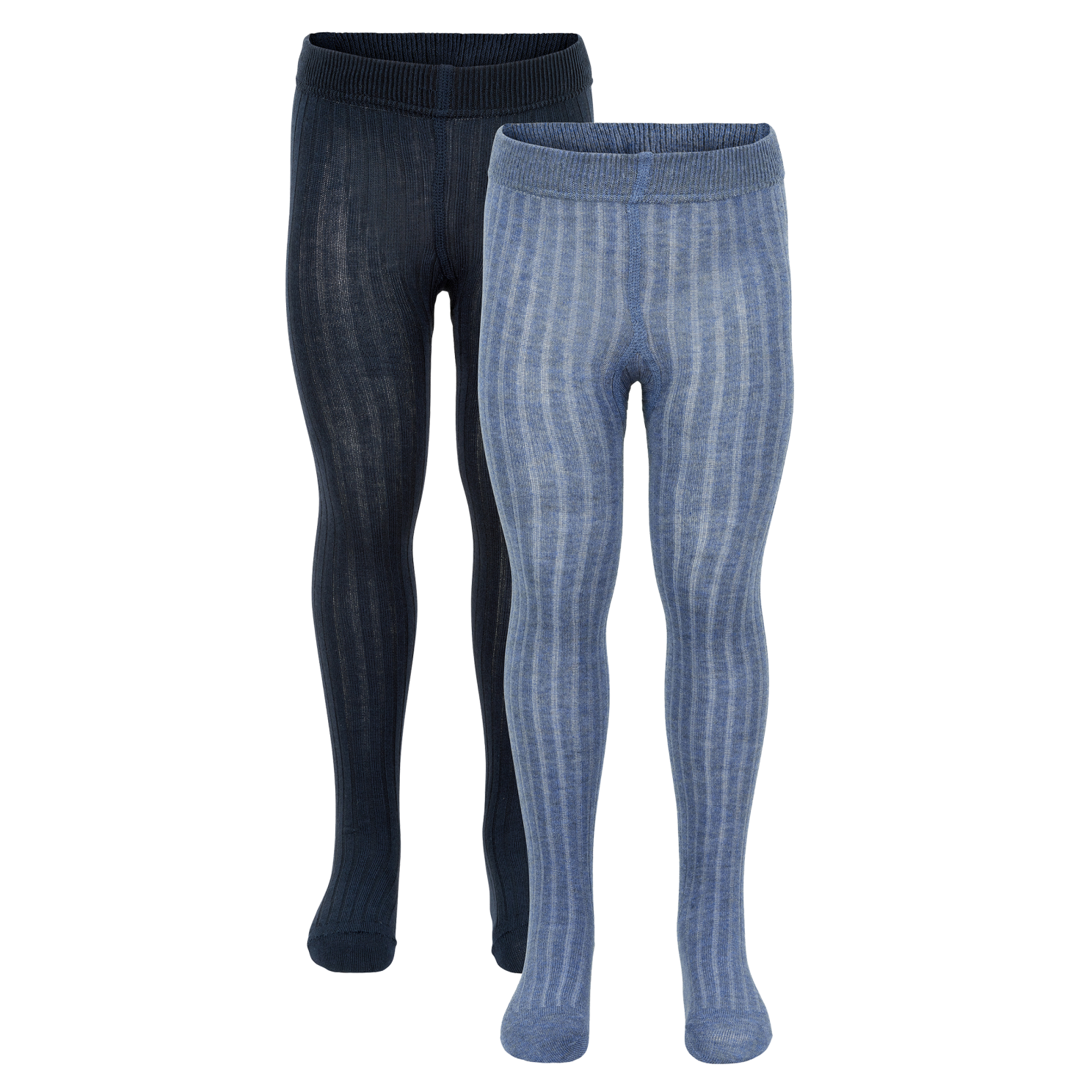 Minymo rib strømpebukser 2-pak. Super fine strømpebukser i rib-look. Strømpebukserne er perfekte under en kjole eller nederdel, de kan dog også bruges til de kolde dage under et par bukser. I taljen er der en løs ribstrikket kant med stretch..