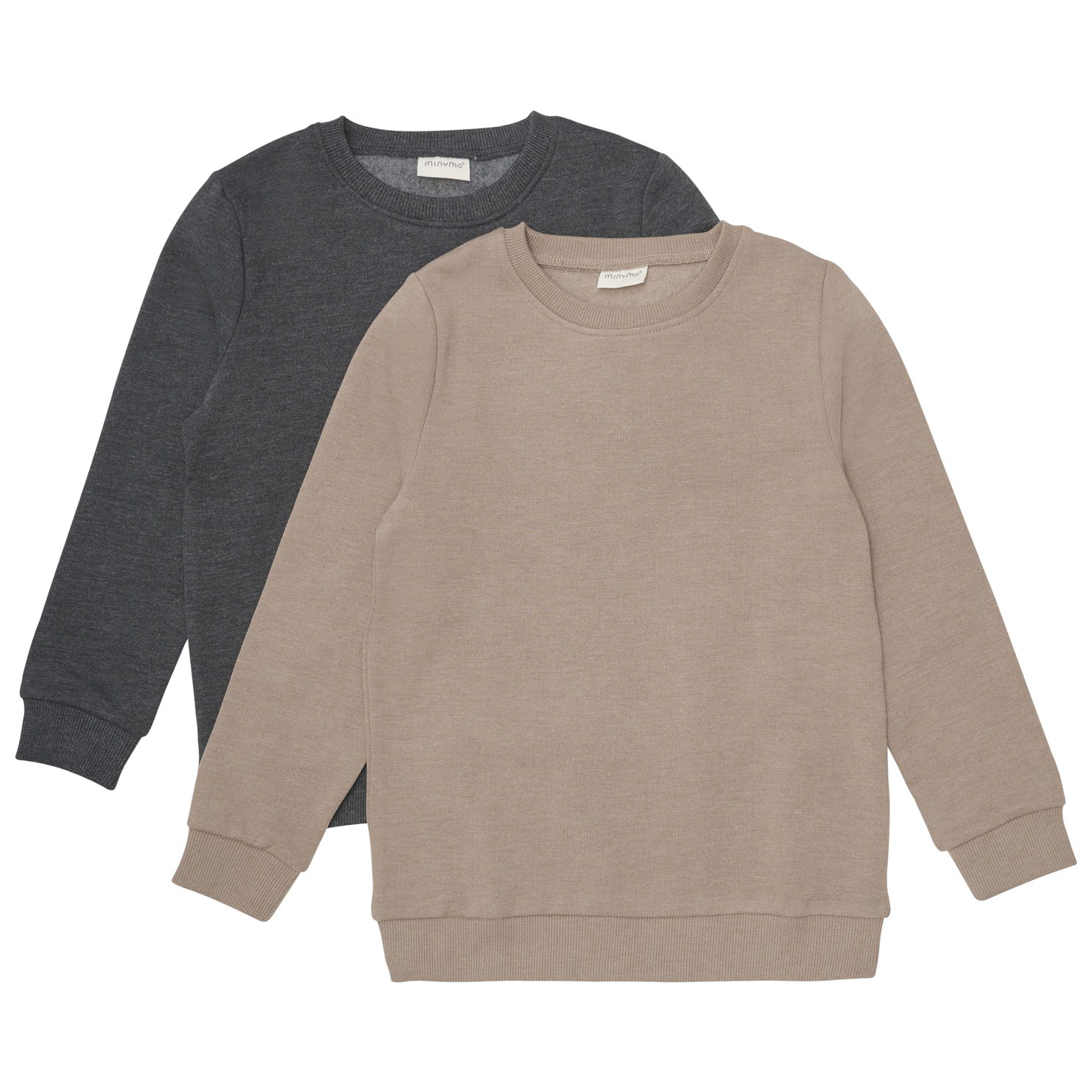 Minymo 2-pak bestående af to sweatshirts lavet af french terry. Trøjerne har rib i halsudskæring, ærmer og i taljen..