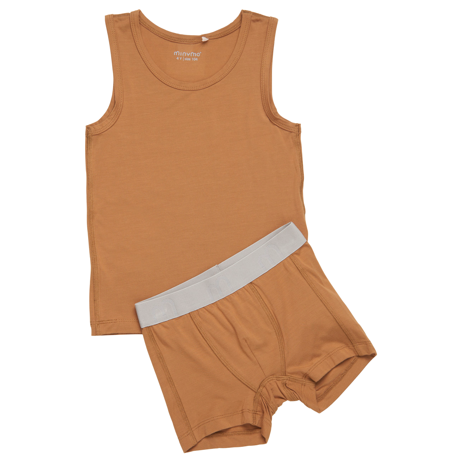 Undertøjssæt bestående af et par underbukser og en tank top. Sættet er lavet af bambus viskose, som er blødt mod huden og behageligt at have på, da det naturligt tilpasser sig kroppens temperatur. Underbukserne har elastik i taljen med Minymo logo..