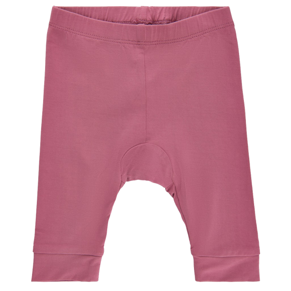 Minymo leggings i ensfarvet lyserød. Bukserne er lavet af ekstra blødt stof, som gør dem behagelige at bære. Bukserne har ribkant ved anklerne og elastik i taljen..