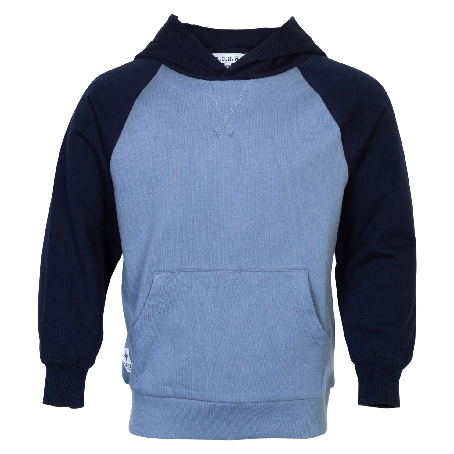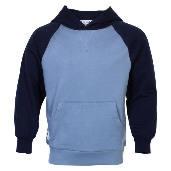 N.O.H.R. Idaho børne hættetrøjeBehagelig to farvet hoodie med blødt børstet inderside, kængurulomme samt ribkant ved hofte og ærmegab..