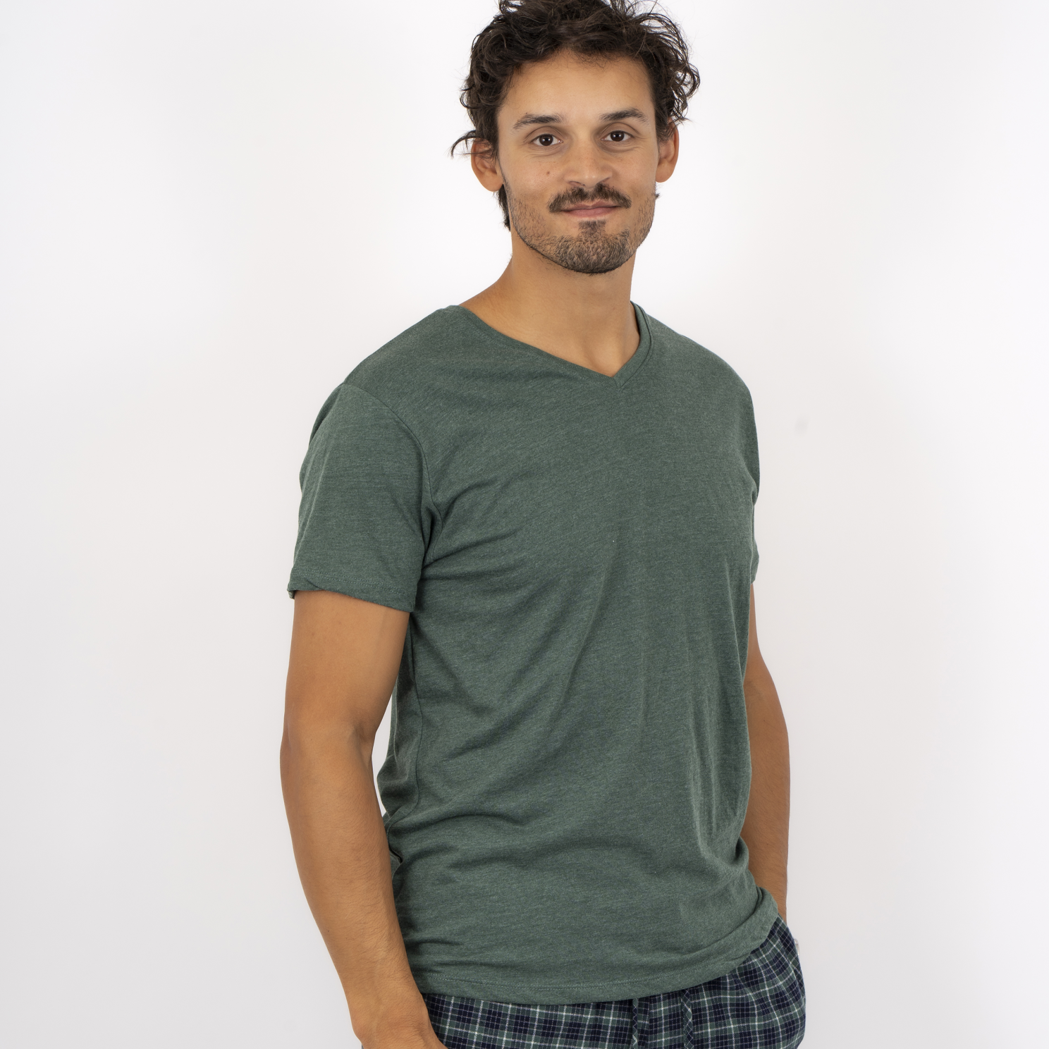 – Klassisk kortærmet t-shirt – Blød bomuldskvalitet- V-hals- Ensfarvet- Slim fit.