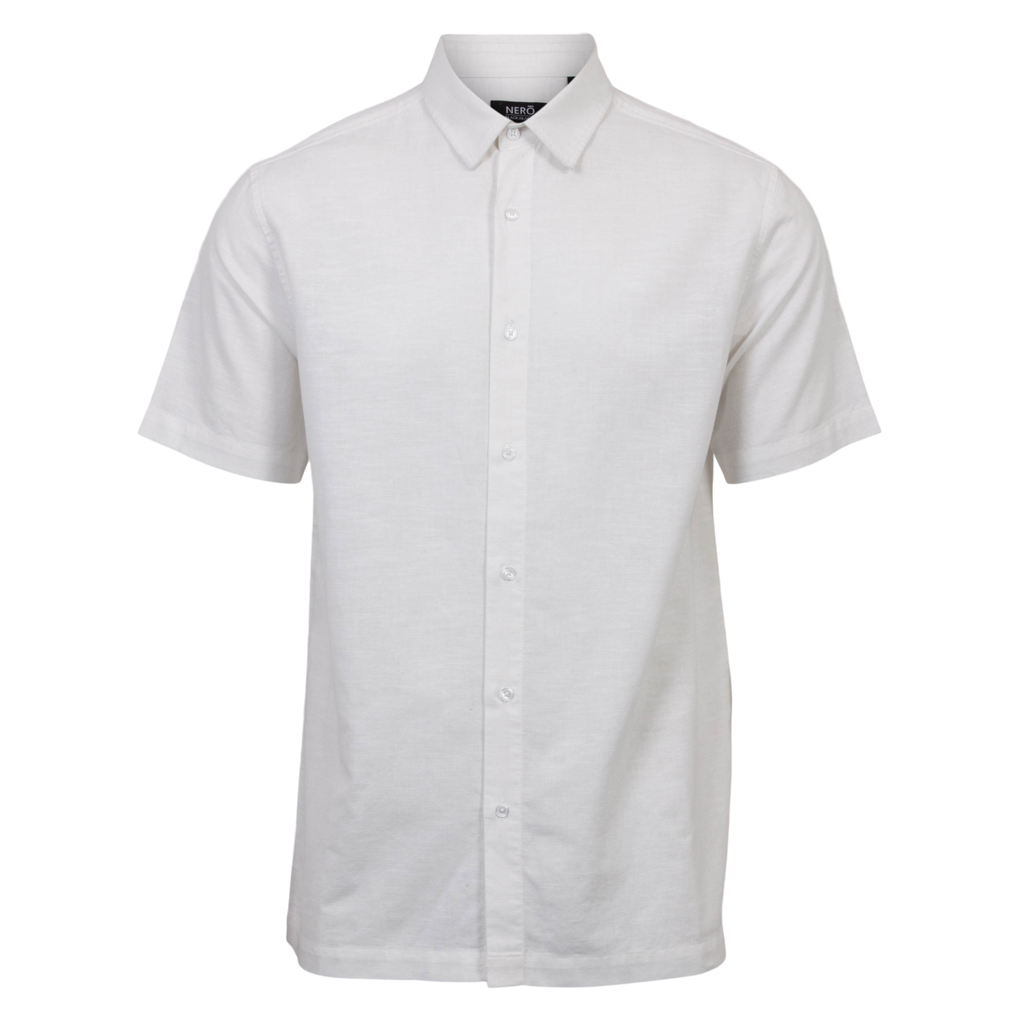 Nero Marco Herre Kortærmet skjorte i hørmix – Bright White – L
