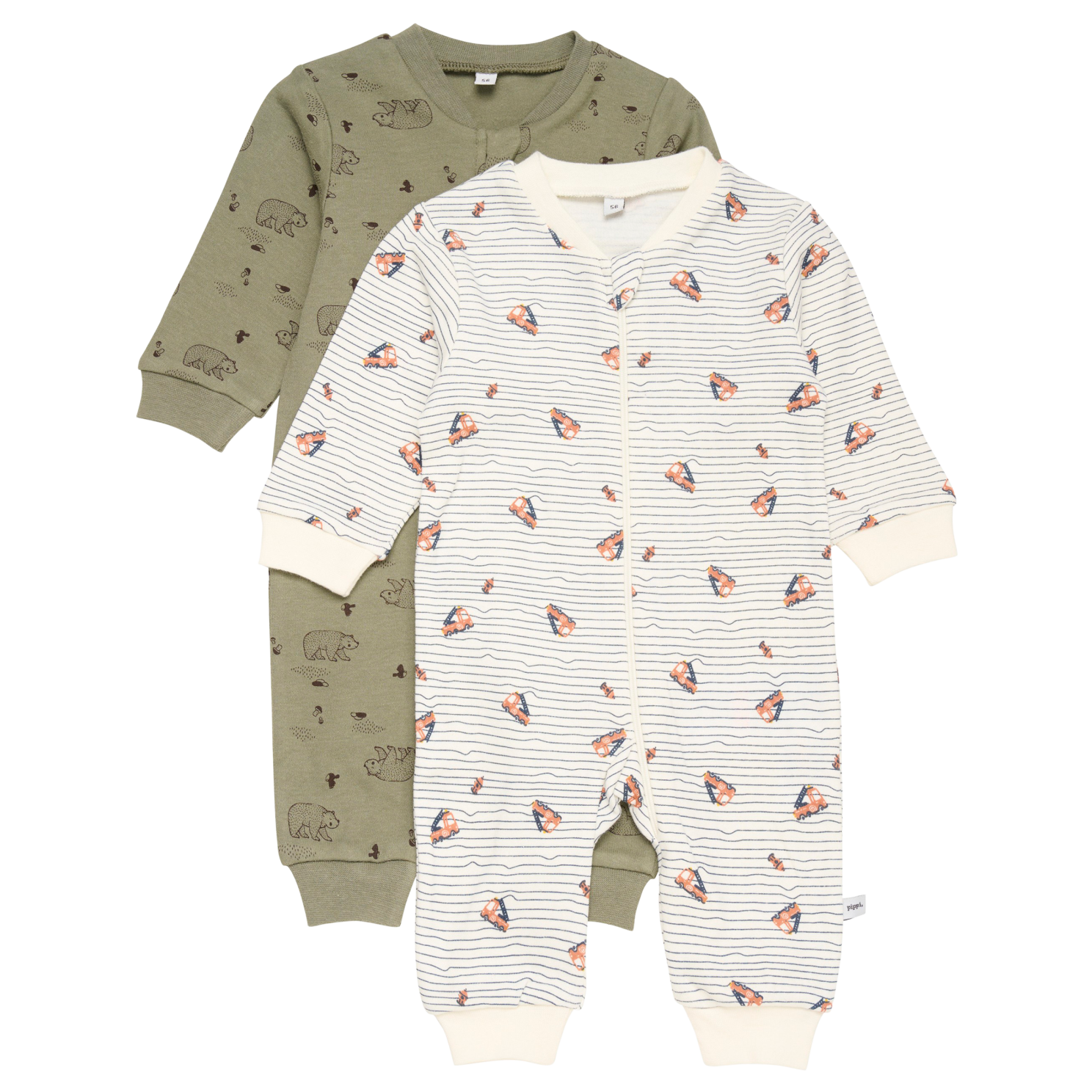 Pippi natdragt 2-pak. Super lækre natdragter med all-over print. Natdragten har lynlåslukning som fortsætter halvvejs ned ad venstre ben. I både ærmer og bukseben er der en afsluttende ribkant..