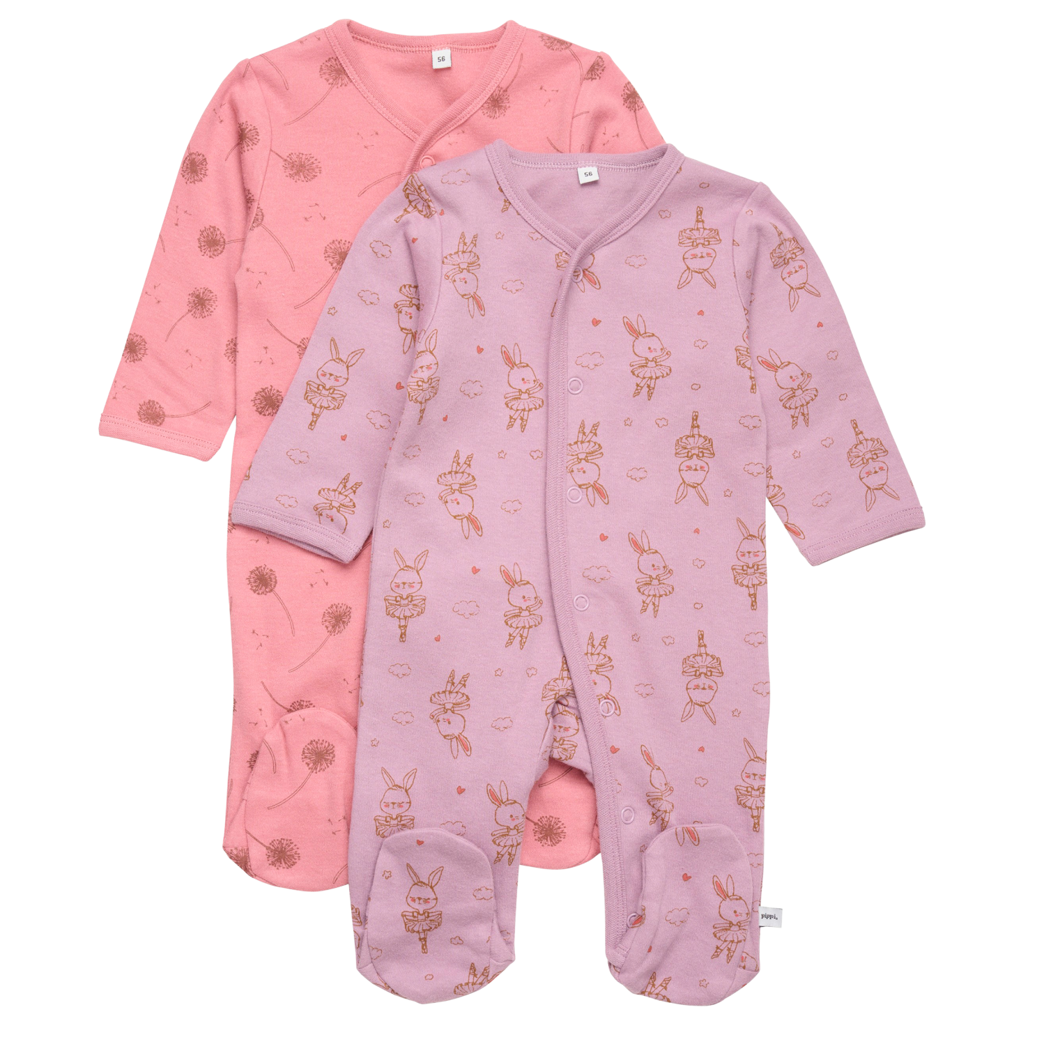 Pippi baby natdragt 2-pak. Langærmet heldragt i et sødt print med fødder og gennemgående knappelukning..