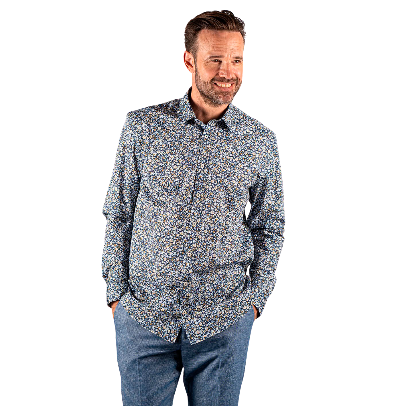 Pre end herre langærmet skjorte med all-over print. Skjorten har gennemgående knaplukning samt krave..