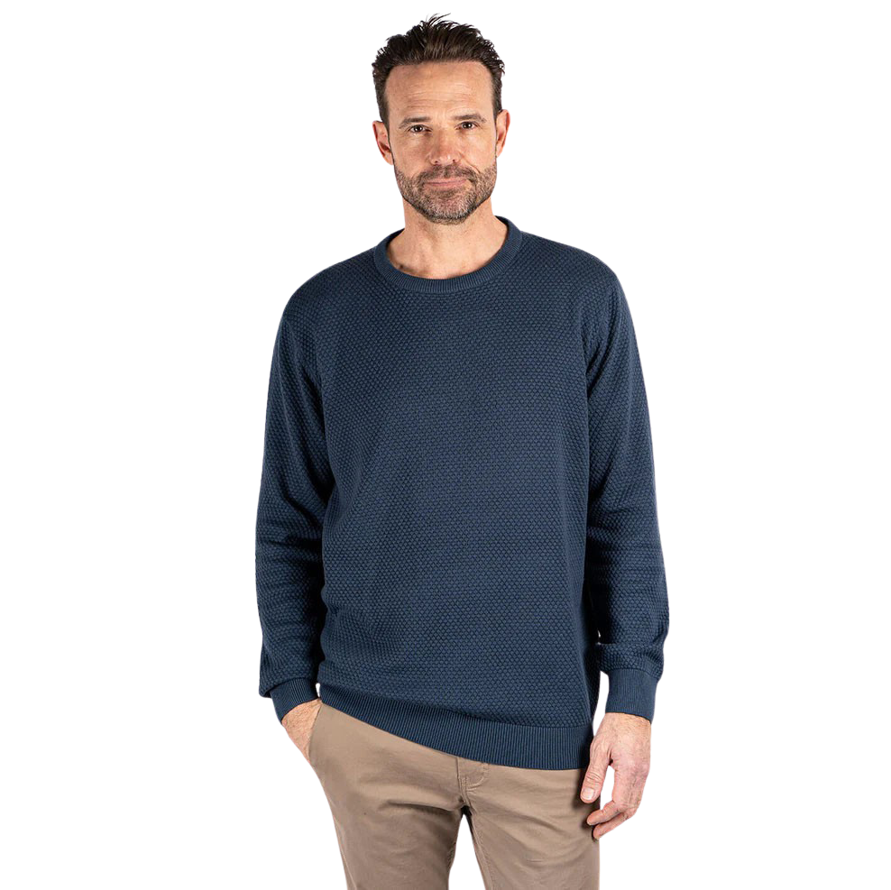 Pre End herre striktrøje med struktur. Strikken har lange ærmer, rund halsudskæring samt ribkant ved ærmer og bund..
