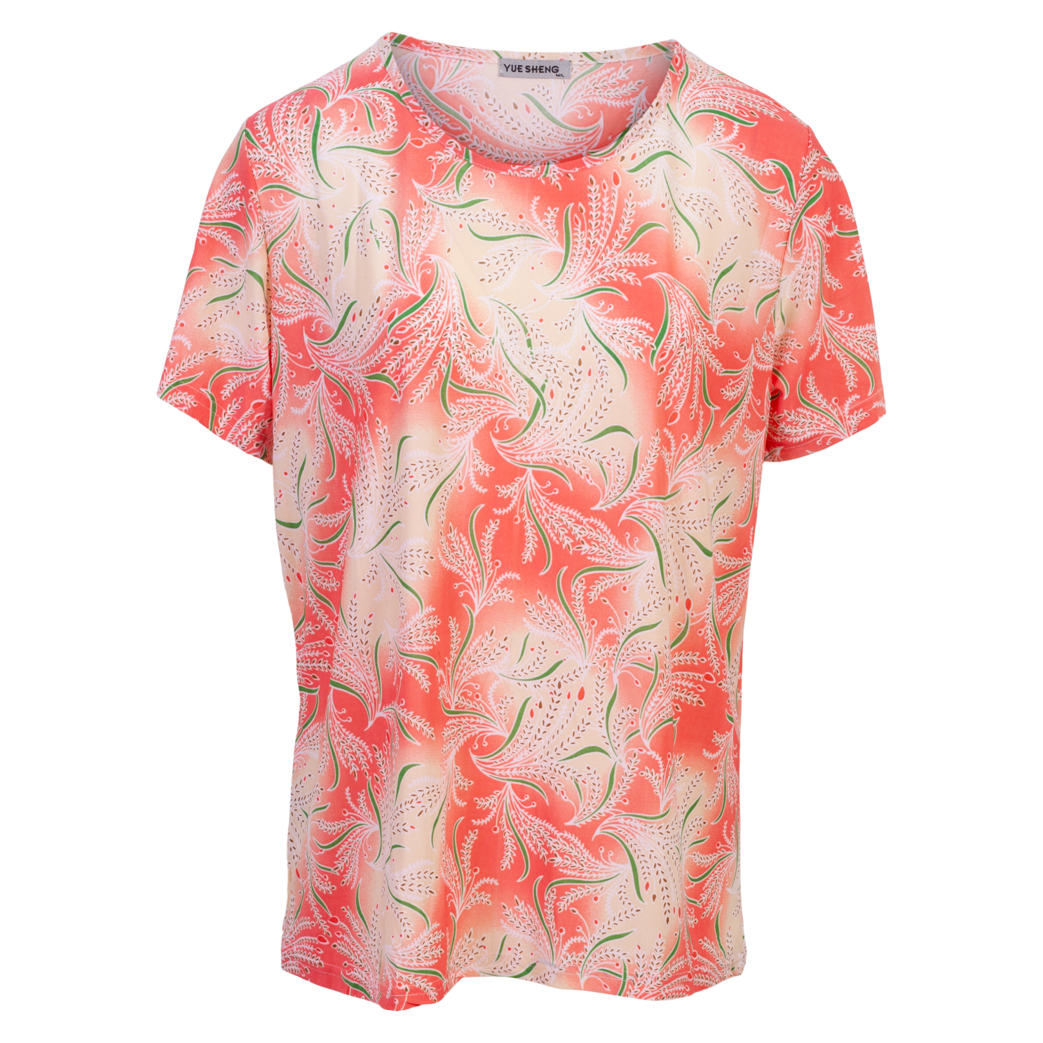 Roseline dame t-shirt. Super smart t-shirt med flot all-over motiv. T-shirten har en rund halsudskæring. OBS: små i størrelse, gå gerne en størrelse op..
