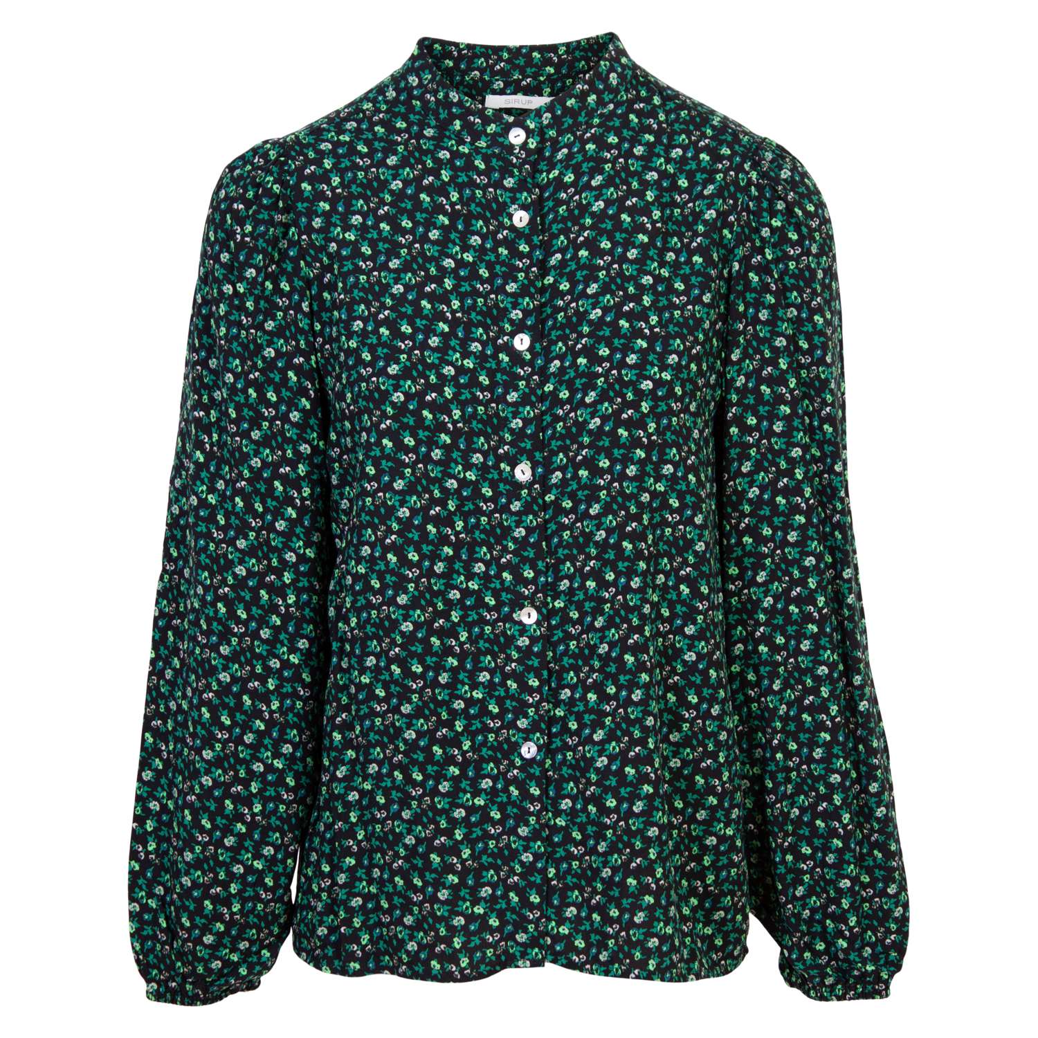Sirup dame skjorte.Skjorten har all-over blomster print, samt har skjorten gennemgående knappelukning. Skjorten har elastik i ærmerne, som gør at ærmerne tilpasser sig om armen..