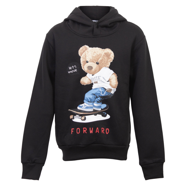 Squared & Cubed hættetrøje med sejt bamse print på fronten. Hættetrøjen har kængurulomme samt en bred ribkant i ærmer og i bunden af trøjen. Trøjen har en fin detalje med en enkelt knappe, som giver mulighed for at lukke hætten ekstra tæt. Den flotte hood.