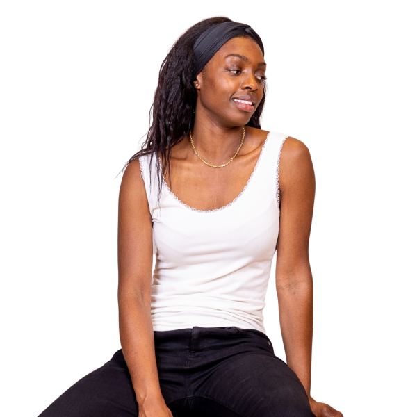 – Bambus top m. blondekant- Brede stropper- Blødt og åndbart materiale.