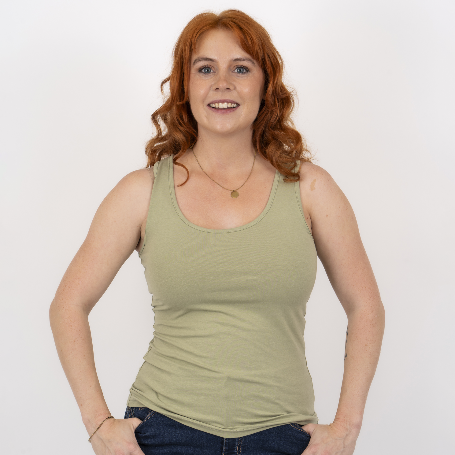 – Ensfarvet basis tanktop- Blød bomuldskvalitet- Brede stropper- Rund halsudskæring.