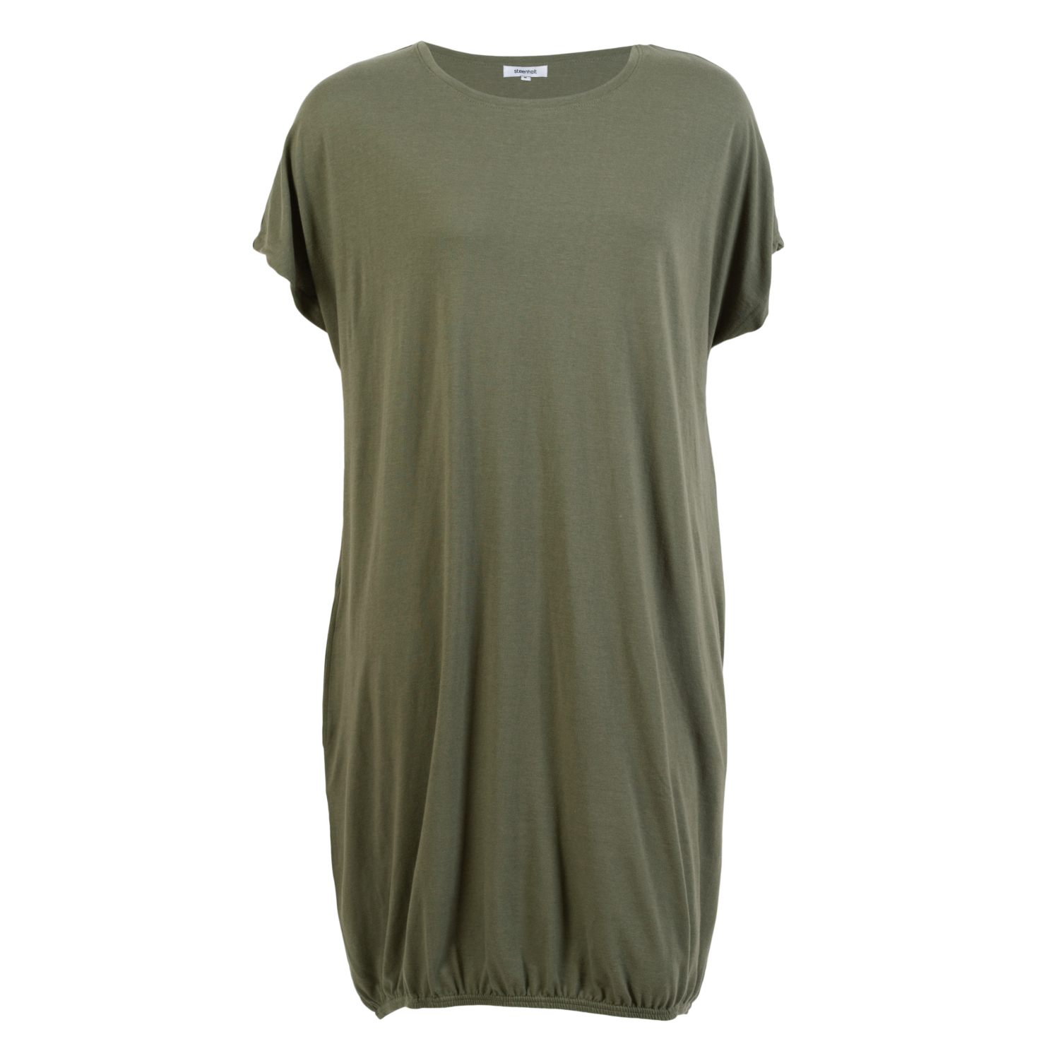 Steenholt Female Nima dame kjole.Flot kortærmet kjole med opsmøget effekt ved ærmet. Kjolen er knælang, har rund halsudskæring samt elastik kant i bunden som giver en flot feminin silhuet..
