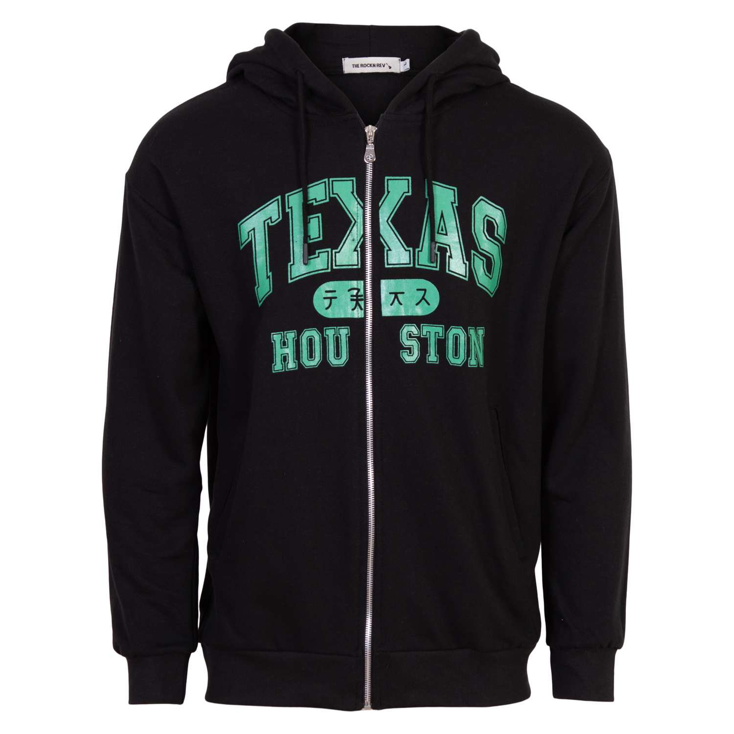 The Rockn Rev herre hættetrøje.Sweatshirten har gennemgående lynlåslukning, samt har trøjen print på fronten. Trøjen har en hætte med snøre, som gør at trøjen kan tilpasse sig om hovedet. Trøjen har 2 åbne sidelommer. Trøjen har ribkant om ærmerne og i bu.