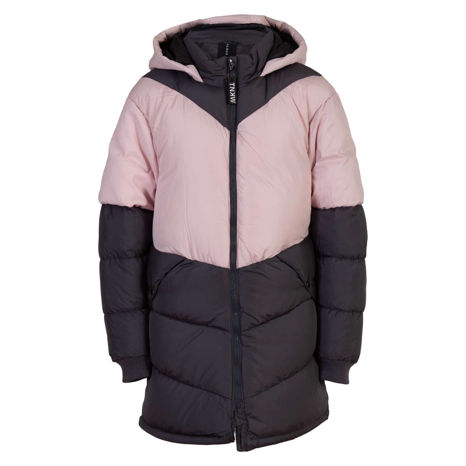 True North pige jakke.Jakken har gennemgående lynlås, samt har jakke en hætte. Jakken har 2 sidelommer med knappelukning, samt ribkant om ærmerne..