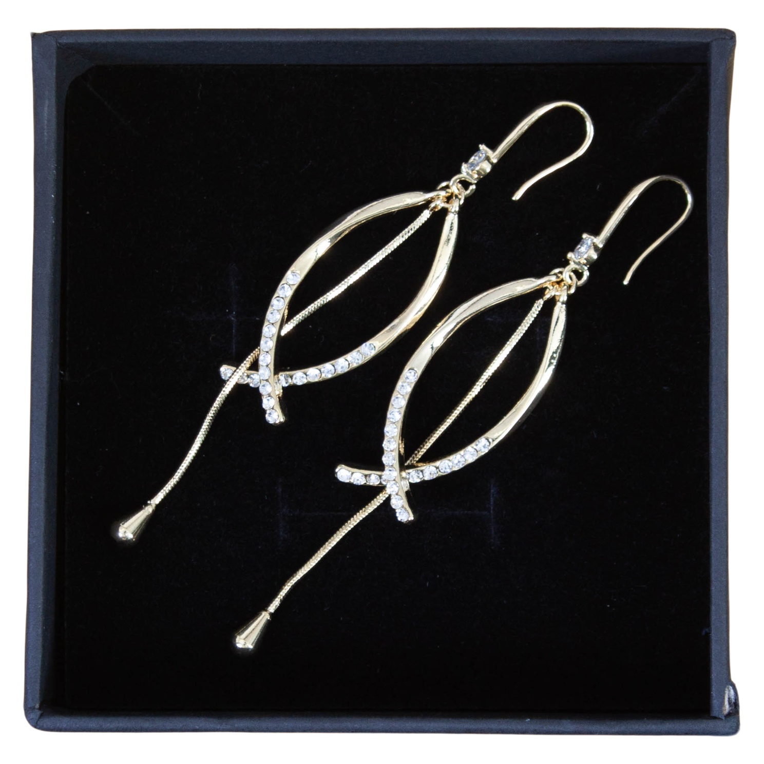 Vanting guldbelagte øreringe i elegant design. Øreringene er prydret med flotte glitrende sten og udstyret med en praktisk kroglukning..