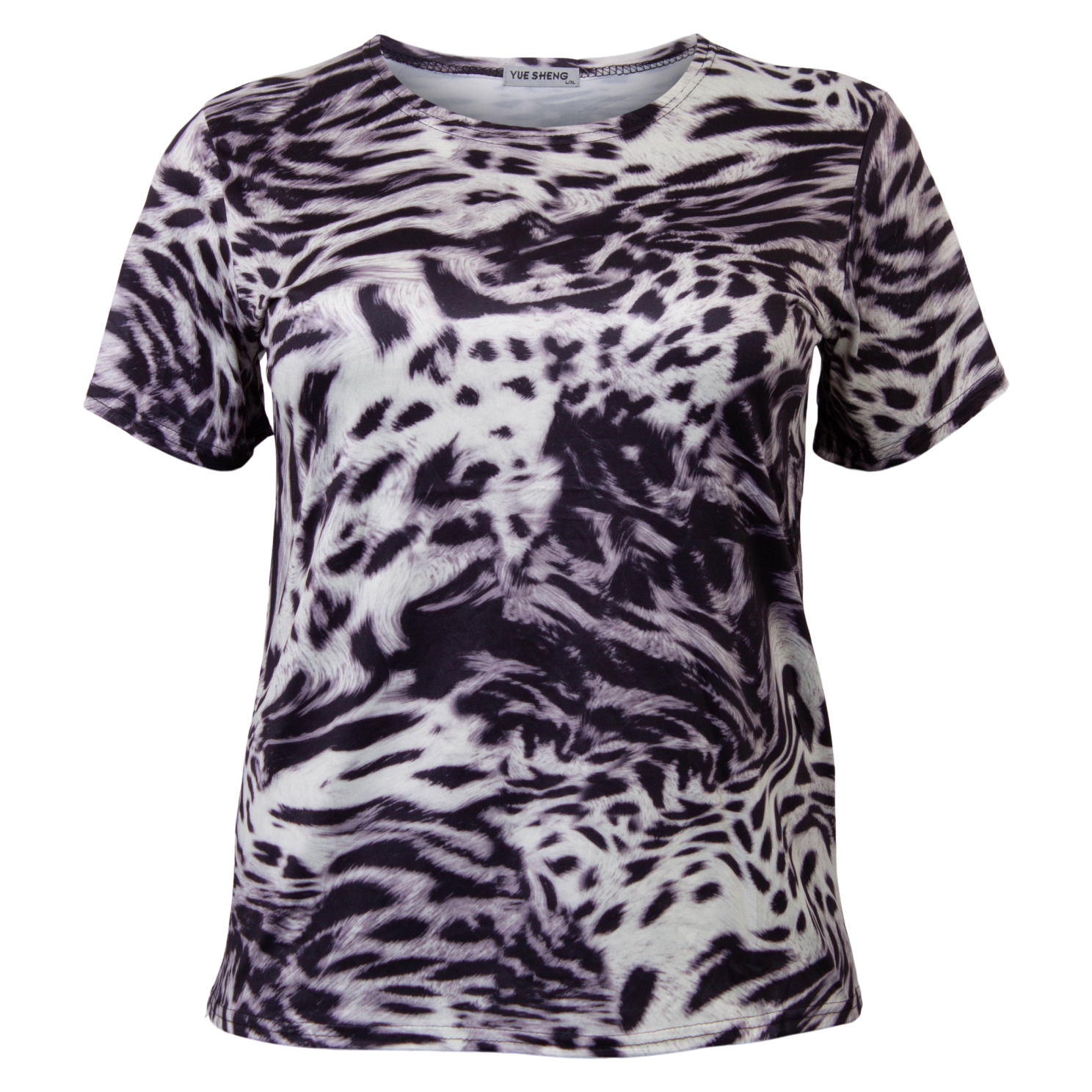 Dame kortærmet T-shirt med og all-over print. T-shirten har rund halsudskæring..