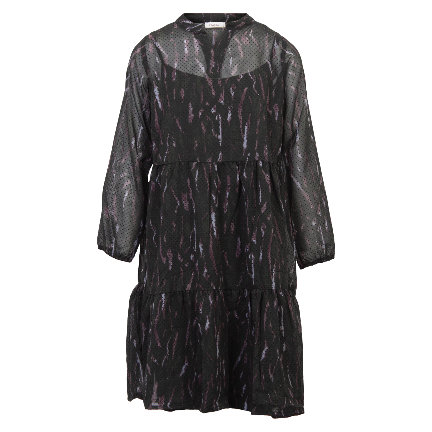 ZbyZ plus size chiffon kjole med fine detaljer, V-hals udskæring samt lange ærmer med smal elastik ved håndleddet. Kjolen har en aftagelig underkjole..
