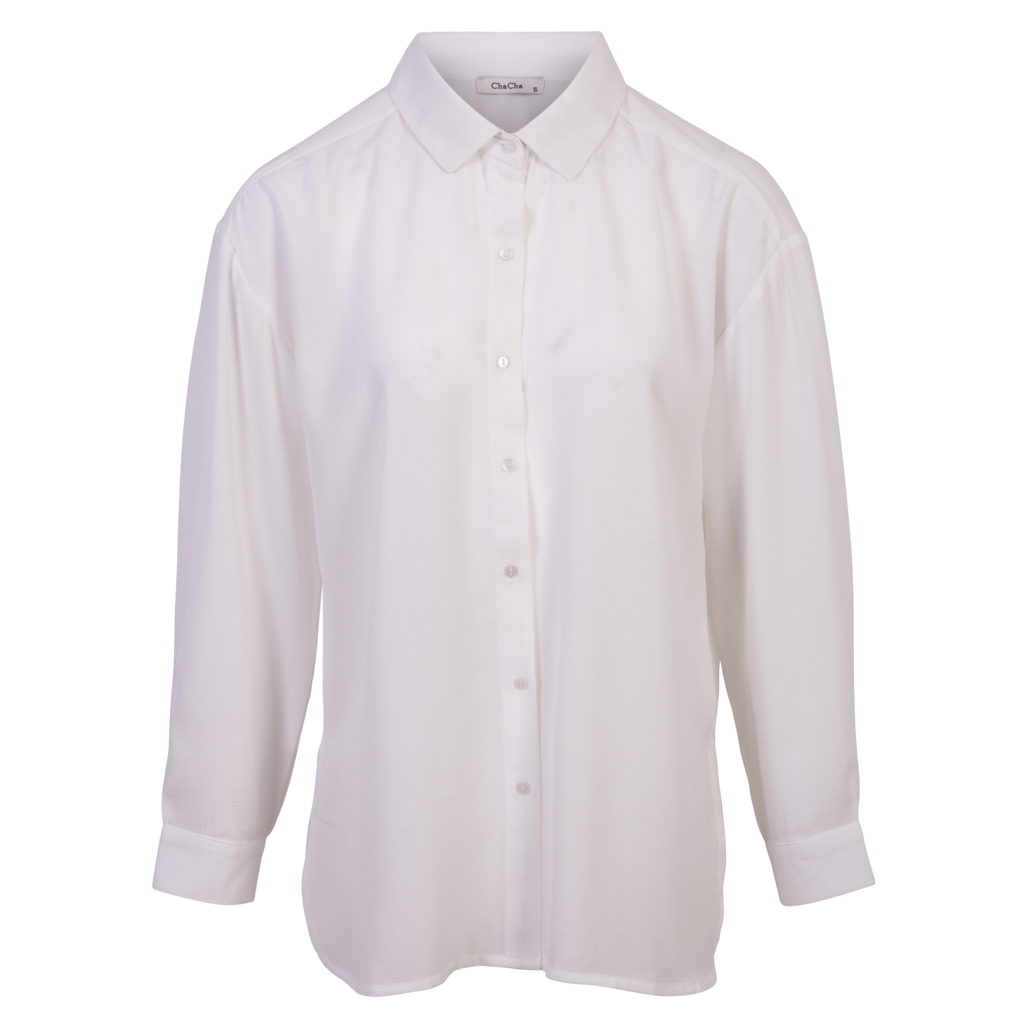 ZbyZ dame plus size skjorte. Flot klassisk skjorte med krave, gennemgående knaplukning på fronten samt lange ærmer med knaplukning..